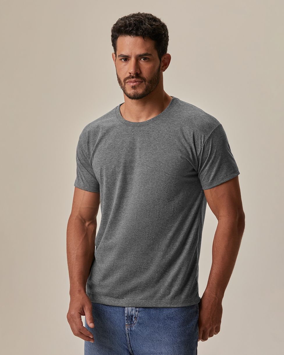 Camiseta Original Masculina Decote Redondo Em Algodão Cinza Escuro - GG