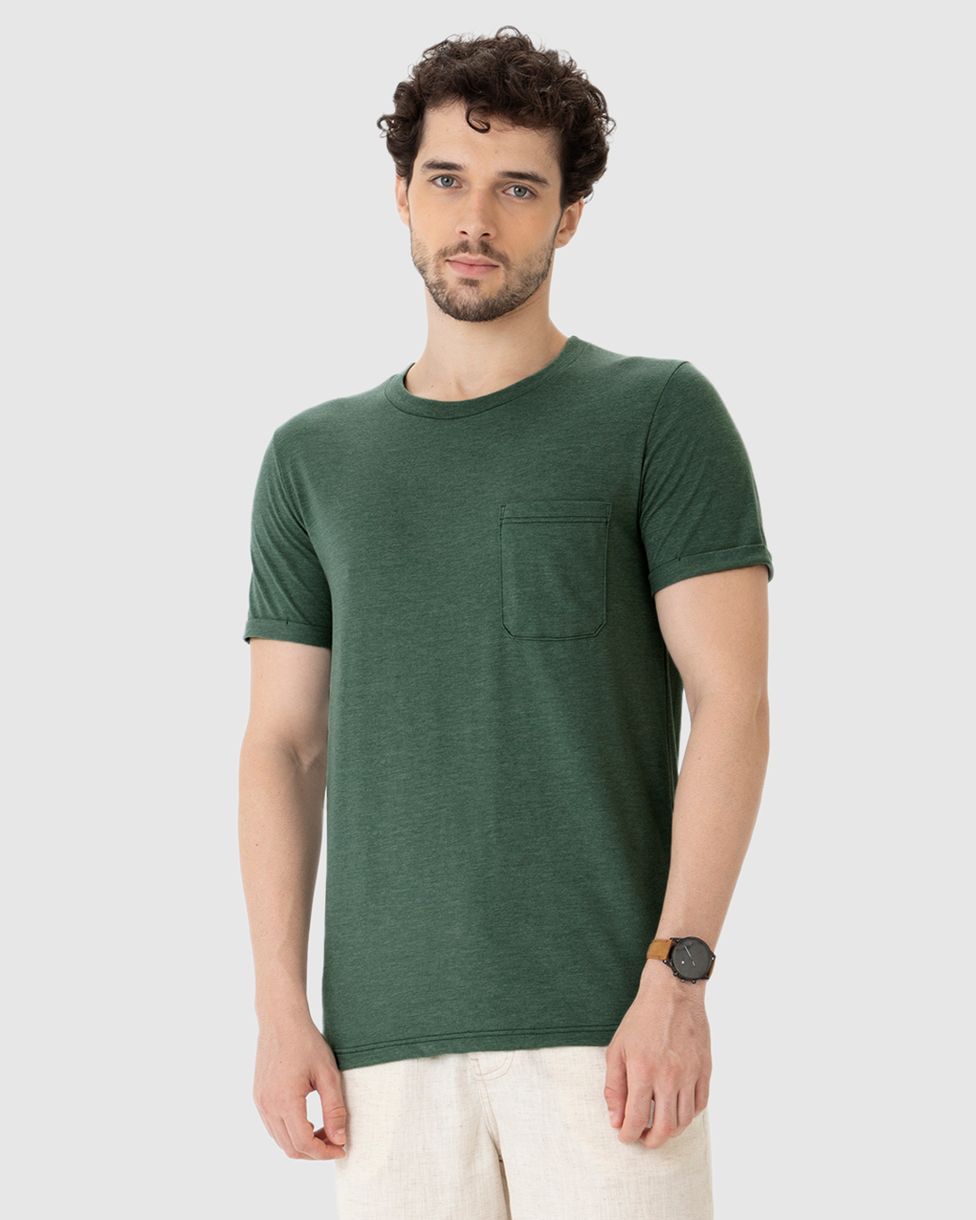 Camiseta Slim Masculina Bolso Peitoral Em Malha Mesclada