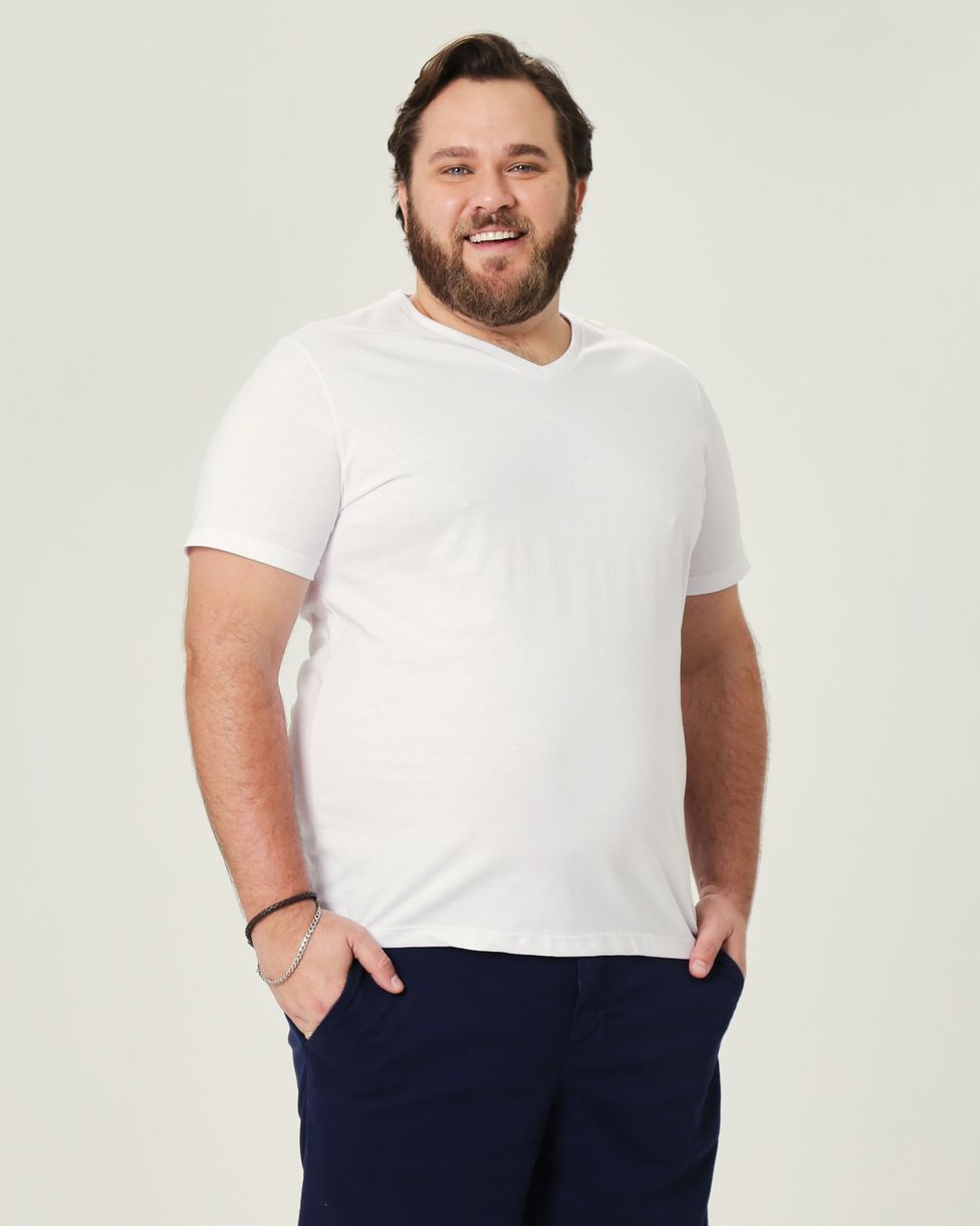 Camiseta Básica Masculina Plus Size Decote V Em Meia Malha