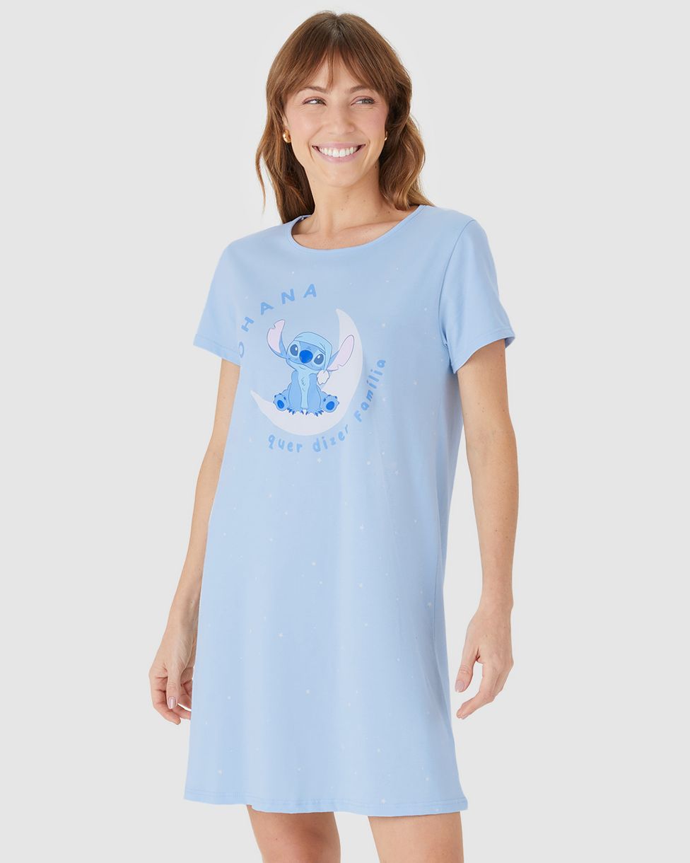 A Camisola Feminina Estampa Ohana Stitch Disney® em Algodão une conforto e fofura para suas noites. Com modelagem camisão e estampa exclusiva do Stitch, garante leveza, maciez e um toque especial de diversão para relaxar em família.