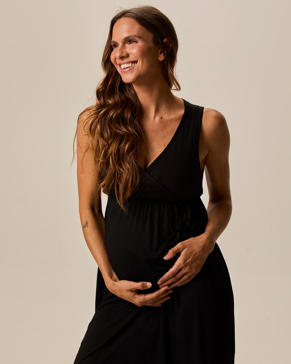 Camisola Feminina Gestante Decote V Transpassado Em Viscose Stretch Preto - XGG