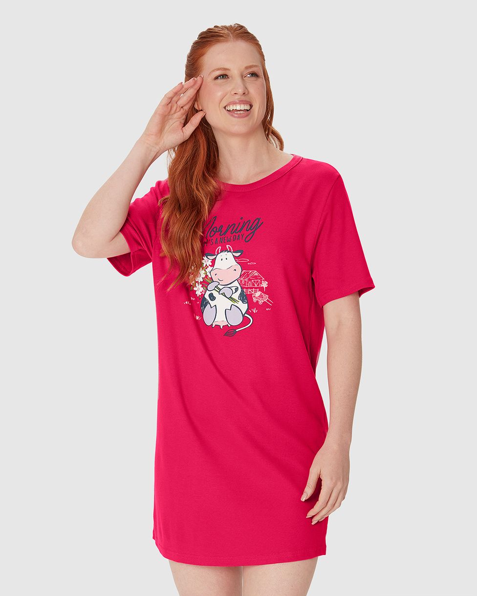Desfrute de noites de sono aconchegantes e cheias de estilo com a Camisola Feminina Manga Curta Estampa Frontal Em Algodão. Confeccionada em algodão macio e respirável, esta camisola proporciona o máximo de conforto para suas horas de descanso. A estampa frontal adiciona um toque divertido e charmoso à peça, enquanto as mangas curtas garantem frescor e liberdade de movimento.