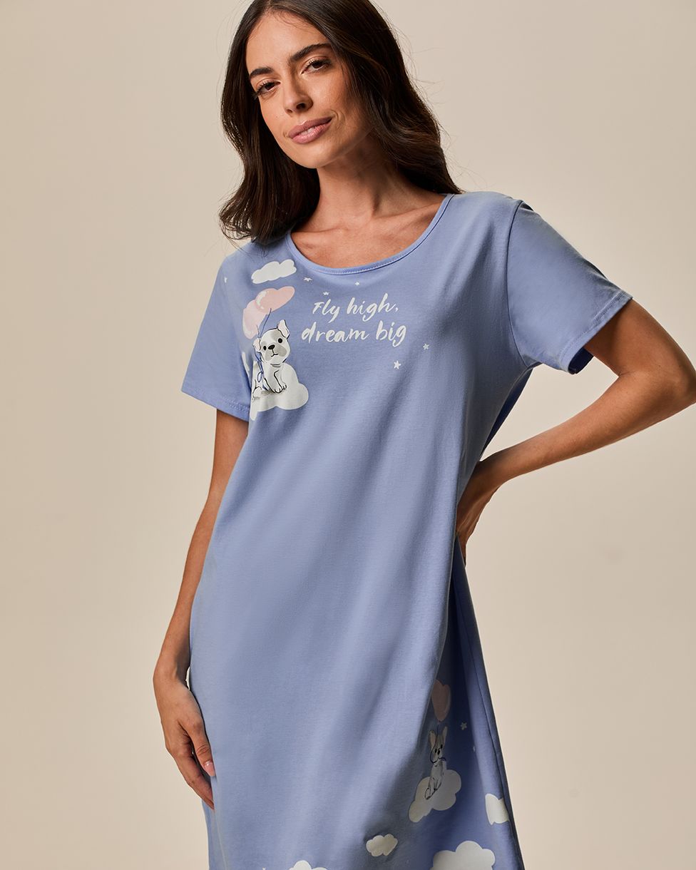 A Camisola Feminina Manga Curta Fly High Dream Big em Meia Malha 100% Algodão é perfeita para quem busca conforto e estilo nas horas de descanso. O tecido 100% algodão proporciona toque macio e respirabilidade, ideal para noites tranquilas e aconchegantes.