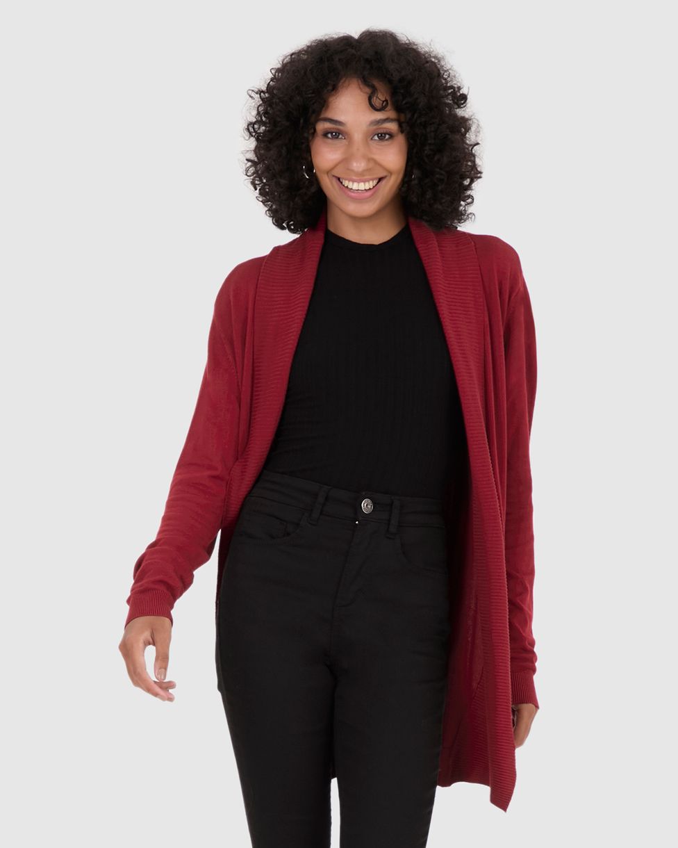 Cardigan Alongado Feminino Em Tricô Vermelho - P