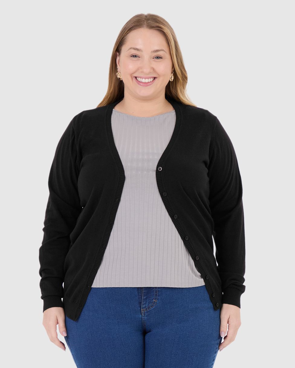 Cardigan Básico Feminino Plus Size Decote V Em Tricô