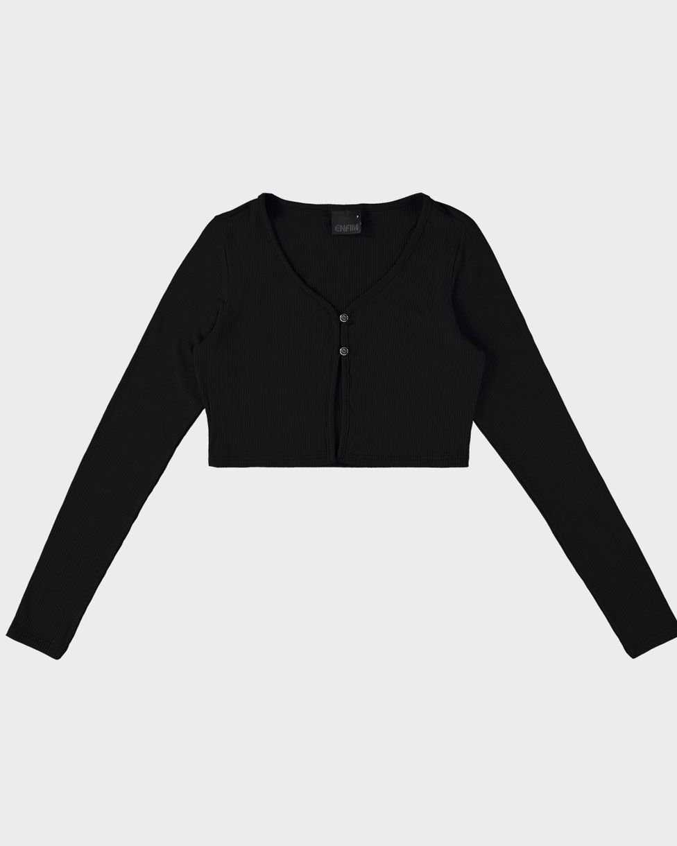 Cardigan Cropped Feminino Em Malha Canelada De Viscose - ENFIM