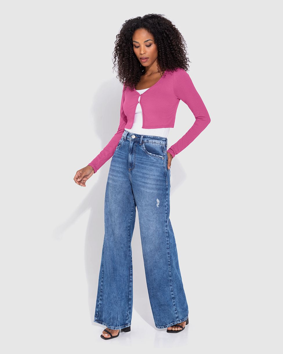 Cardigan Cropped Feminino Em Malha Canelada De Viscose - ENFIM