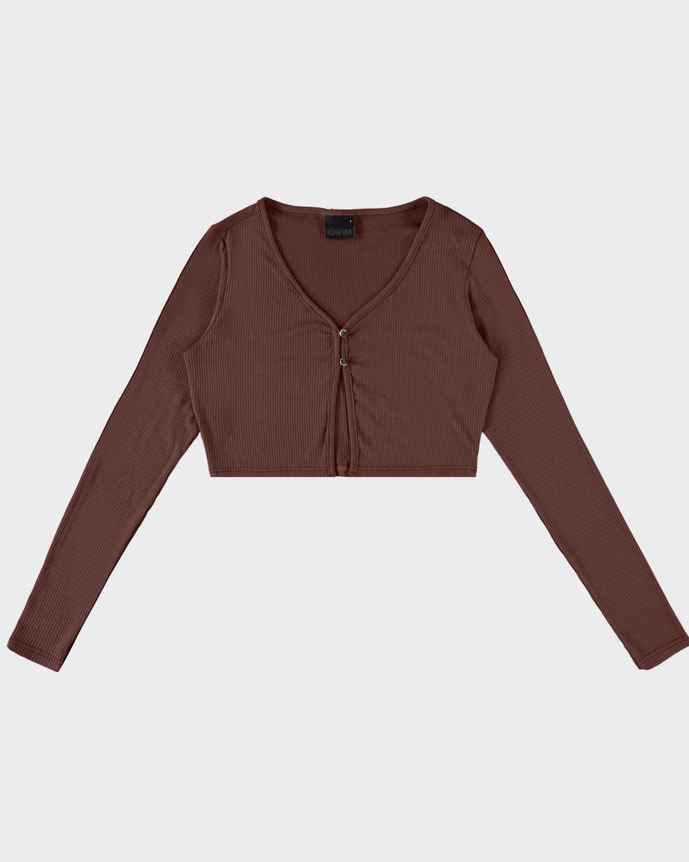 Cardigan Cropped Feminino Em Malha Canelada De Viscose - ENFIM