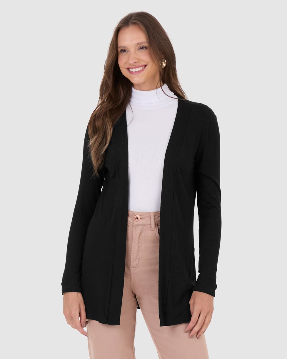 Cardigan Feminino Manga Longa Em Malha Canelada De Viscose