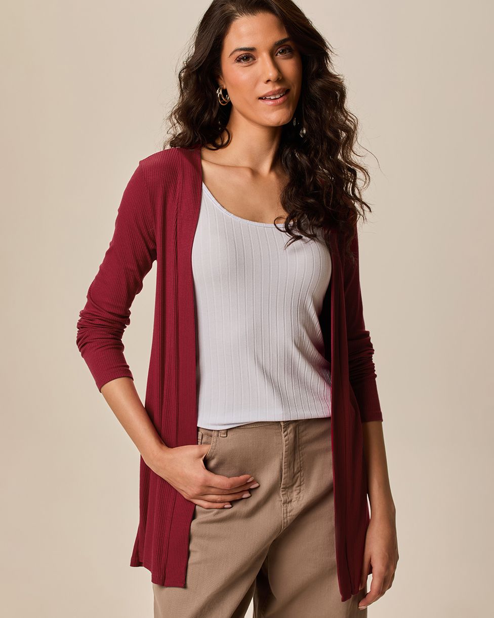 Cardigan Feminino Manga Longa Em Malha Canelada De Viscose