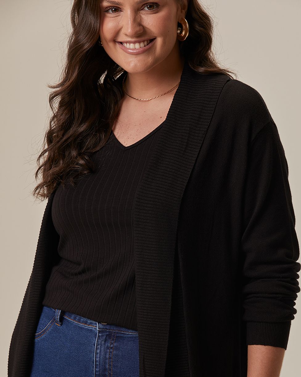 Cardigan Feminino Plus Size Alongado em Tricô - Conforto, estilo e elegância em uma única peça. Ideal para compor looks versáteis, este cardigan é perfeito para quem busca praticidade e sofisticação no dia a dia. Feito para valorizar as curvas e garantir bem-estar em qualquer ocasião.