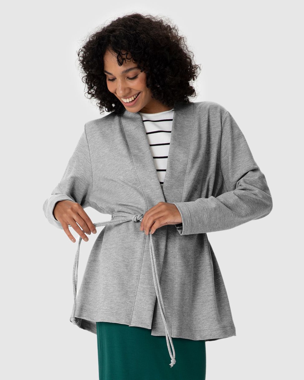 Casaco Feminino Alongado Com Cadarço Amarração Em Moletom