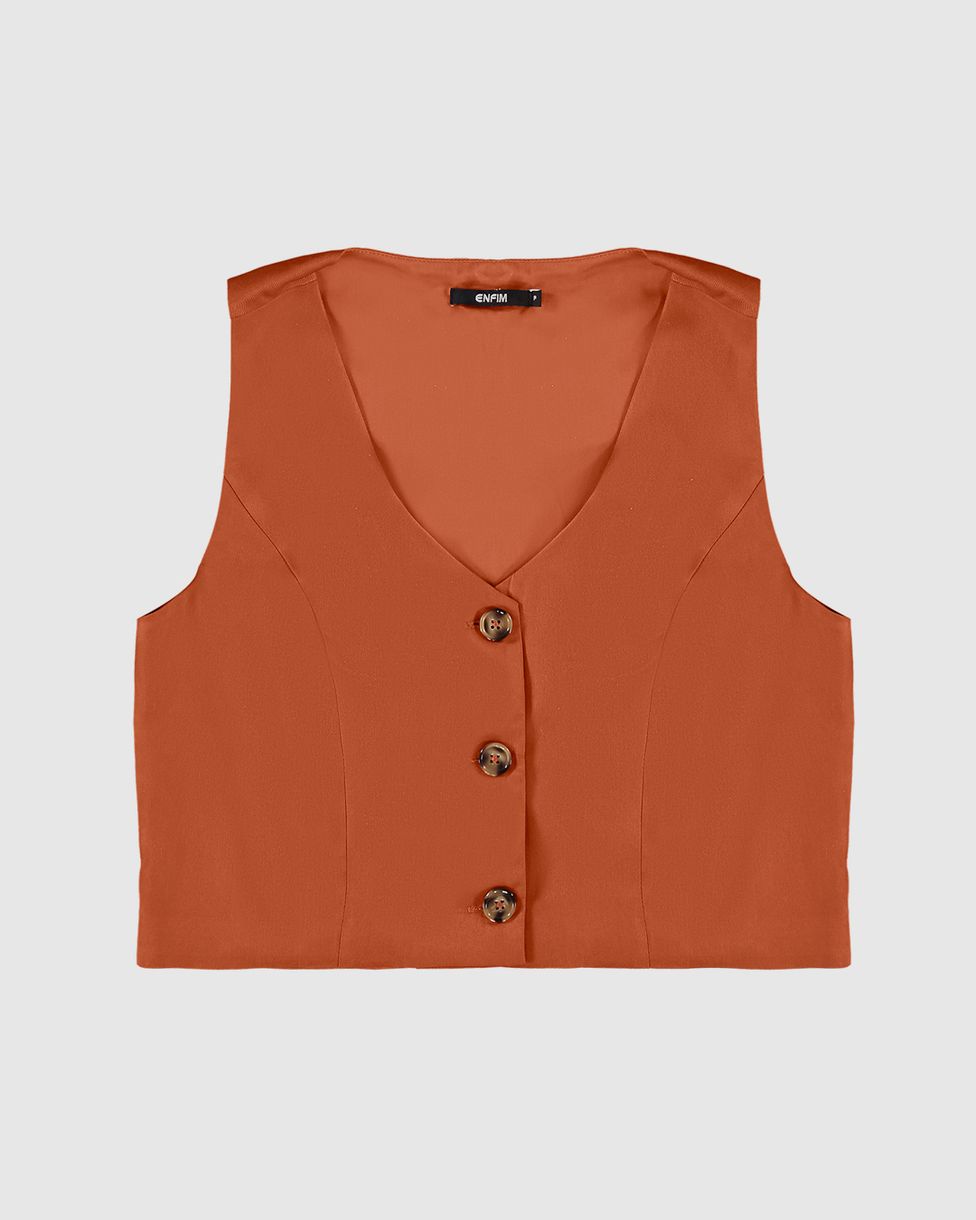 Colete Alfaiataria Feminino Abotoamento Frontal Em Liocel - ENFIM