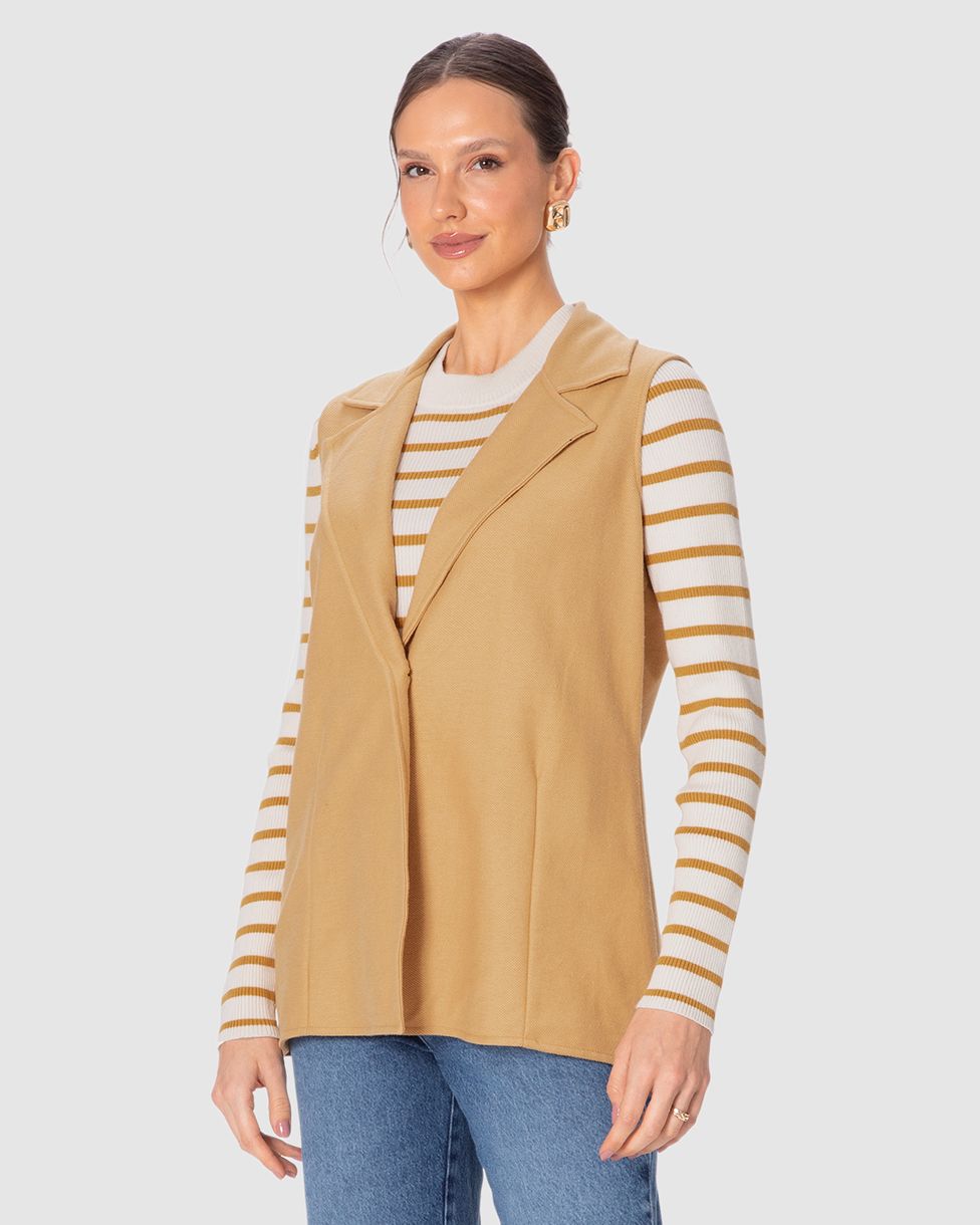 Colete Alongado Feminino Abotoamento Único Em Moletom Sarjado