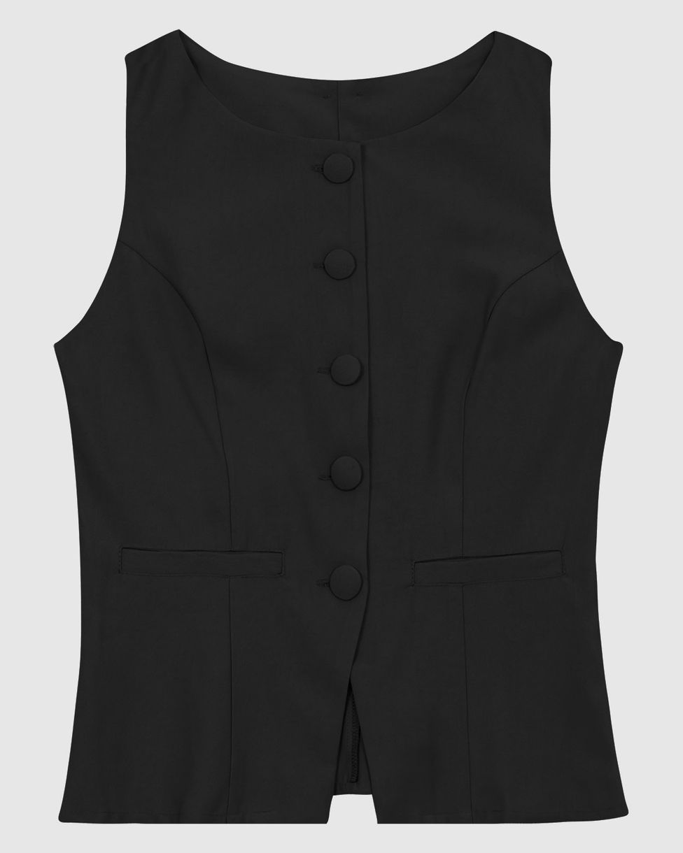 Colete Alongado Feminino Fechamento Por Botões Forrados Em Viscose Sarjada - ENFIM