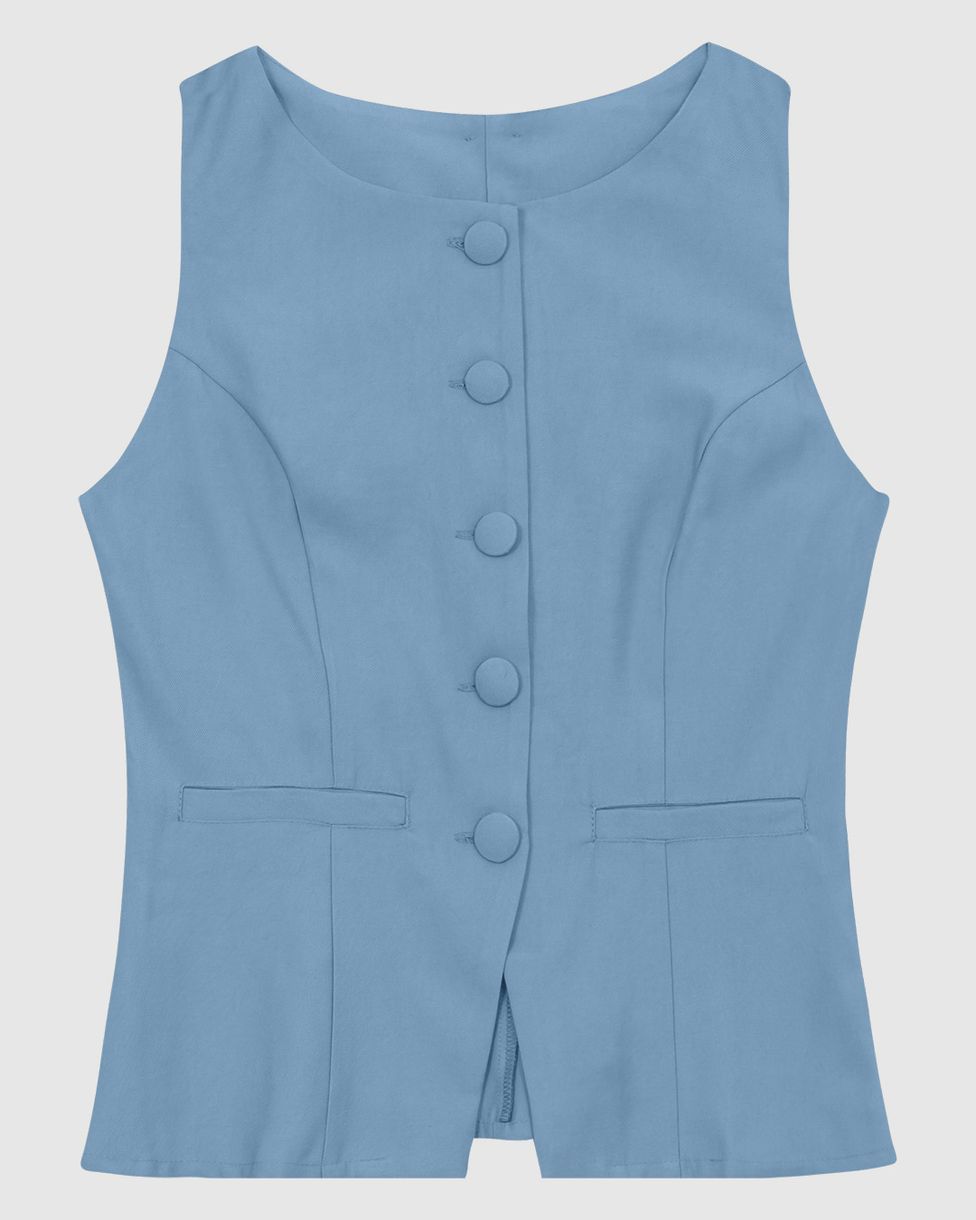 Colete Alongado Feminino Fechamento Por Botões Forrados Em Viscose Sarjada - ENFIM