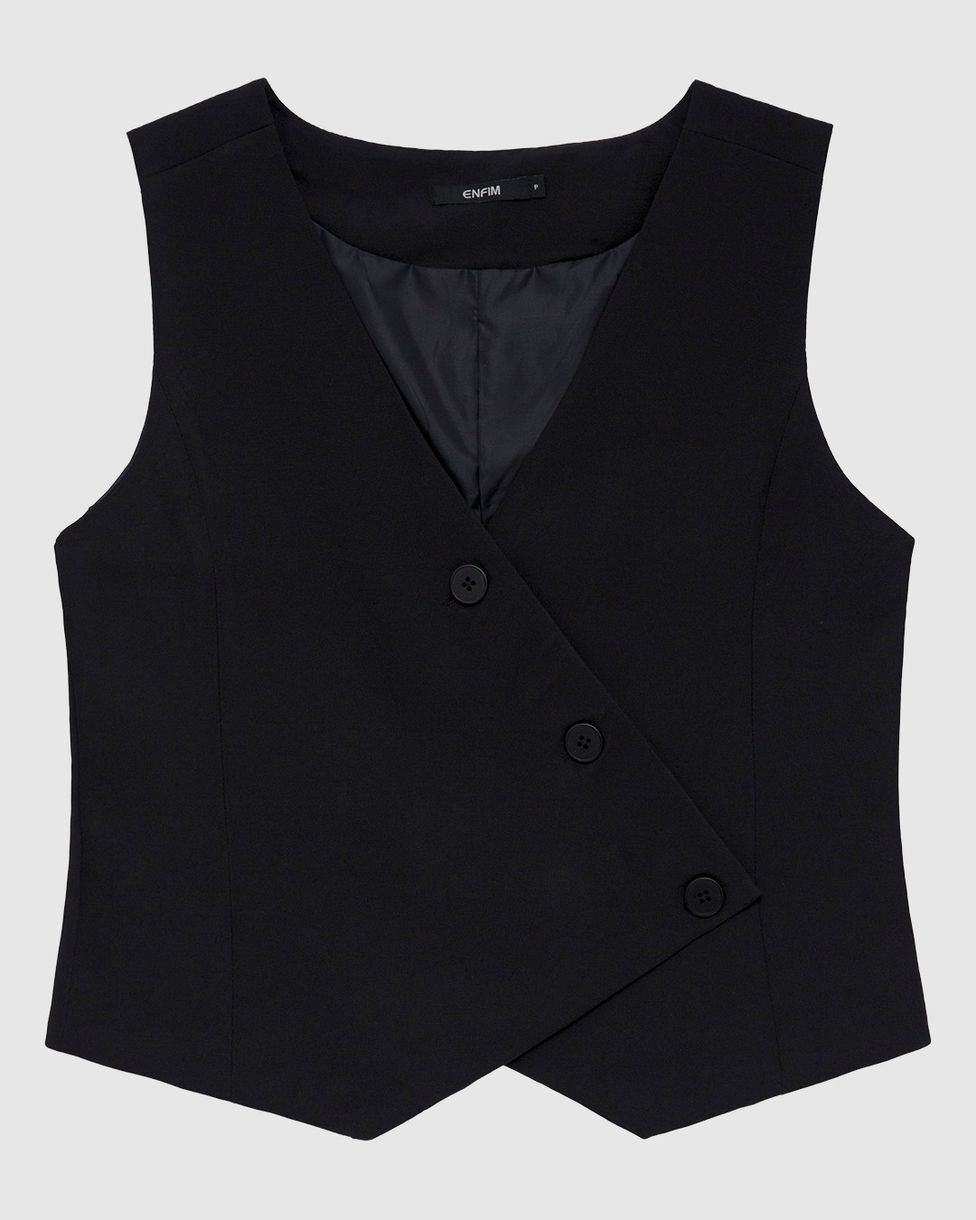 Colete Feminino Transpassado Botão Frontal Em Tecido Alfaiataria - ENFIM Preto - M