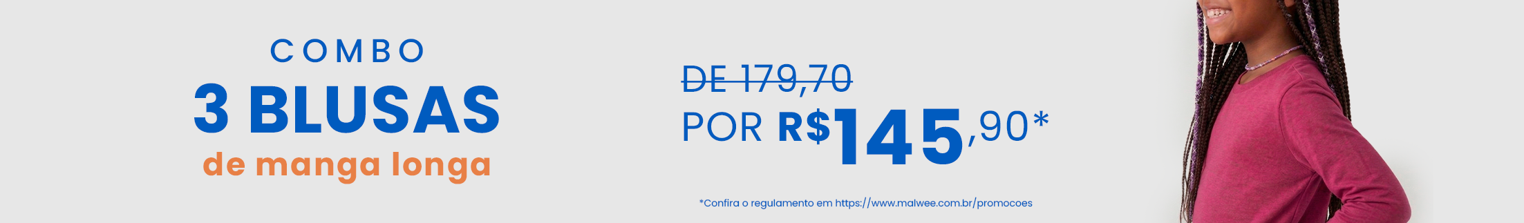 Tamanho1238Ver maisAdicionar a sacolaCamiseta Infantil Unissex Manga Longa Em Algodão Malwee Kids R$ 65,90Em até 10x de R$ 6,59 sem juros