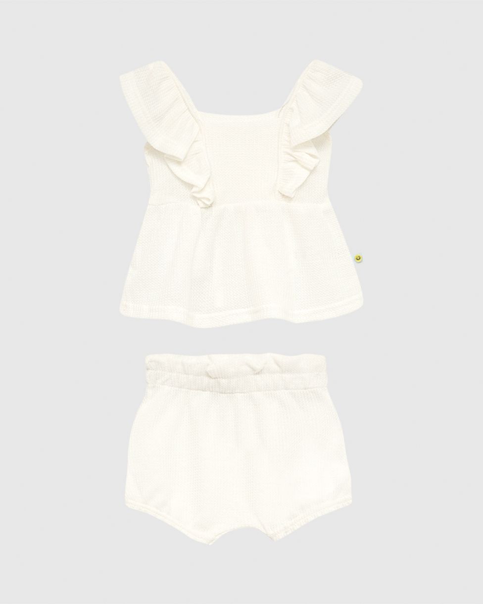InfantilConjuntosConjuntos CurtosConjunto Bebê Menina Blusa Babados E Shorts Em Malha Texturizada Malwee Kids