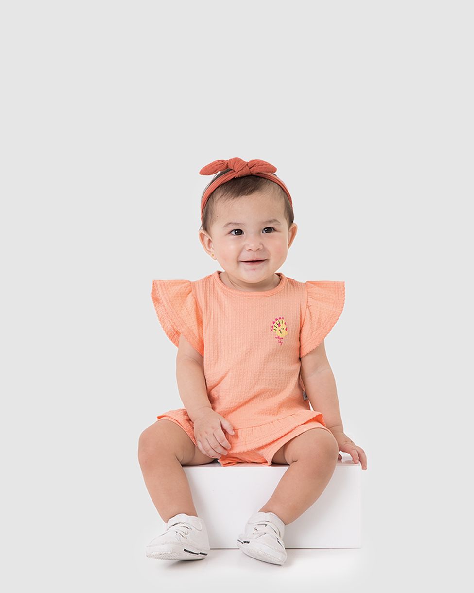 Conjunto Bebê Menina Blusa E Shorts Em Malha Texturizada Malwee Kids Laranja - 12M