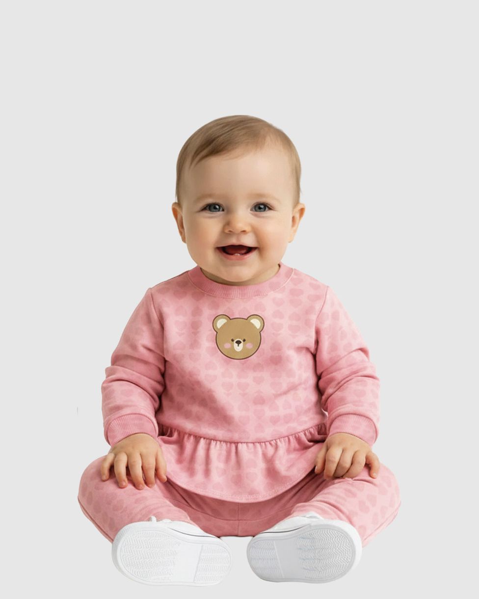 O Conjunto Bebê Menina Blusão + Calça da Malwee Kids é a definição de doçura e conforto para as crianças. Feito em malha jacquard coração, o conjunto apresenta uma textura delicada e toque macio. O blusão com babados e o fofo bordado de ursinho garantem um visual encantador.