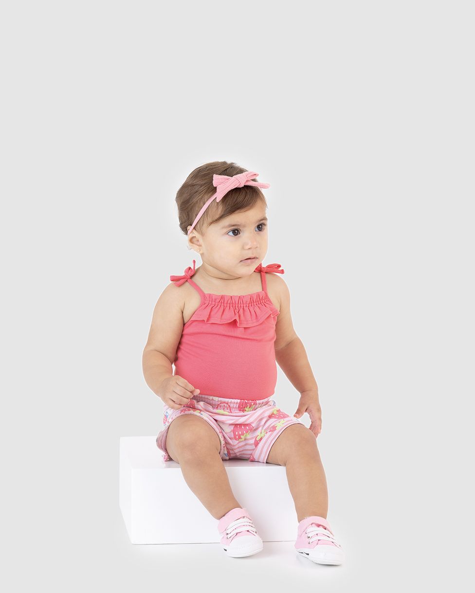 Conjunto Bebê Menina Body Alça Fina E Babado Em Algodão Malwee Kids