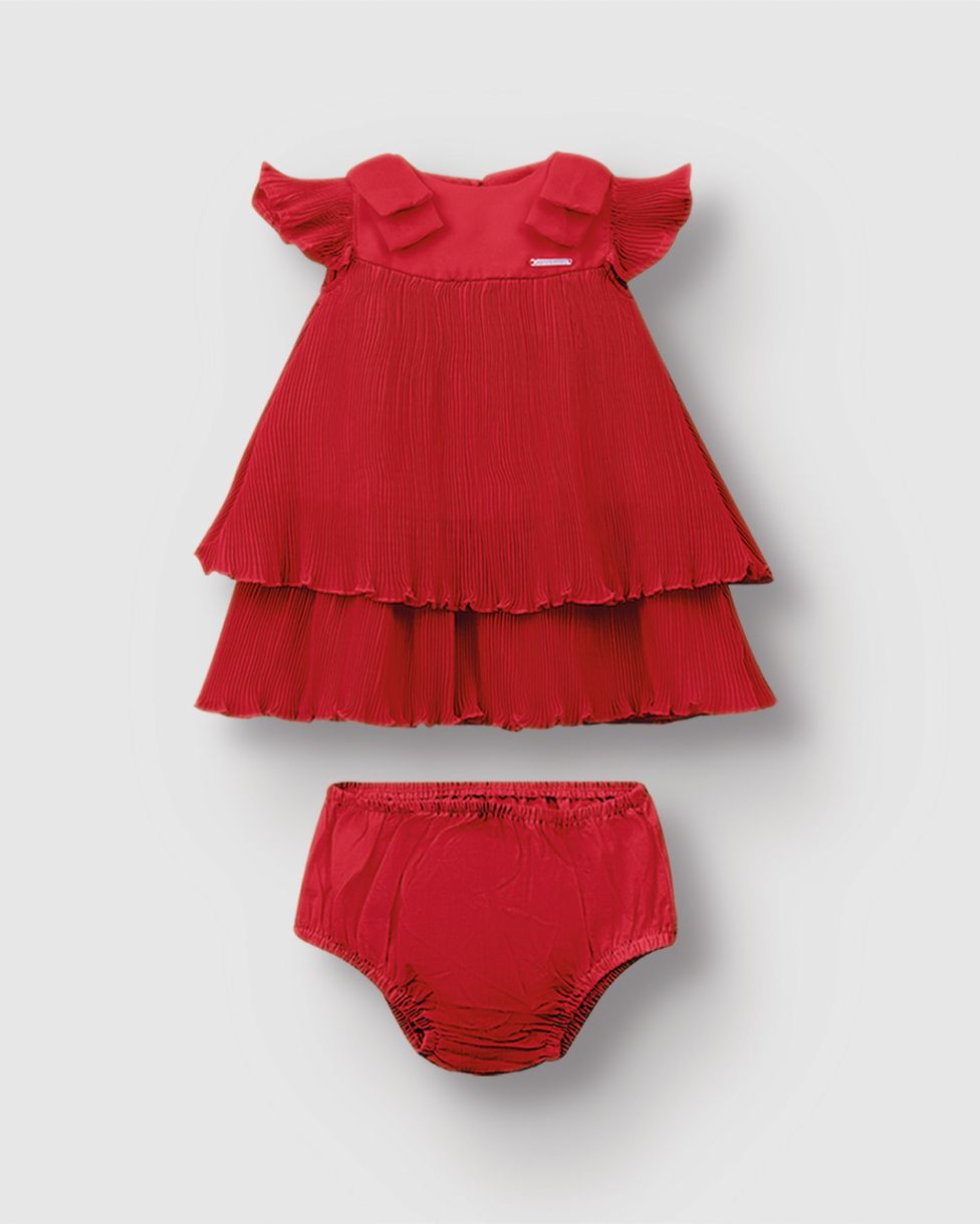 Conjunto Bebê Menina Vestido Crepe Plissado + Calcinha Tricoline - Carinhoso Vermelho - 12M