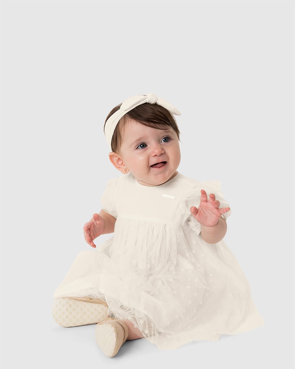 Conjunto Bebê Menina Vestido Tule + Calcinha Em Tricoline - Carinhoso