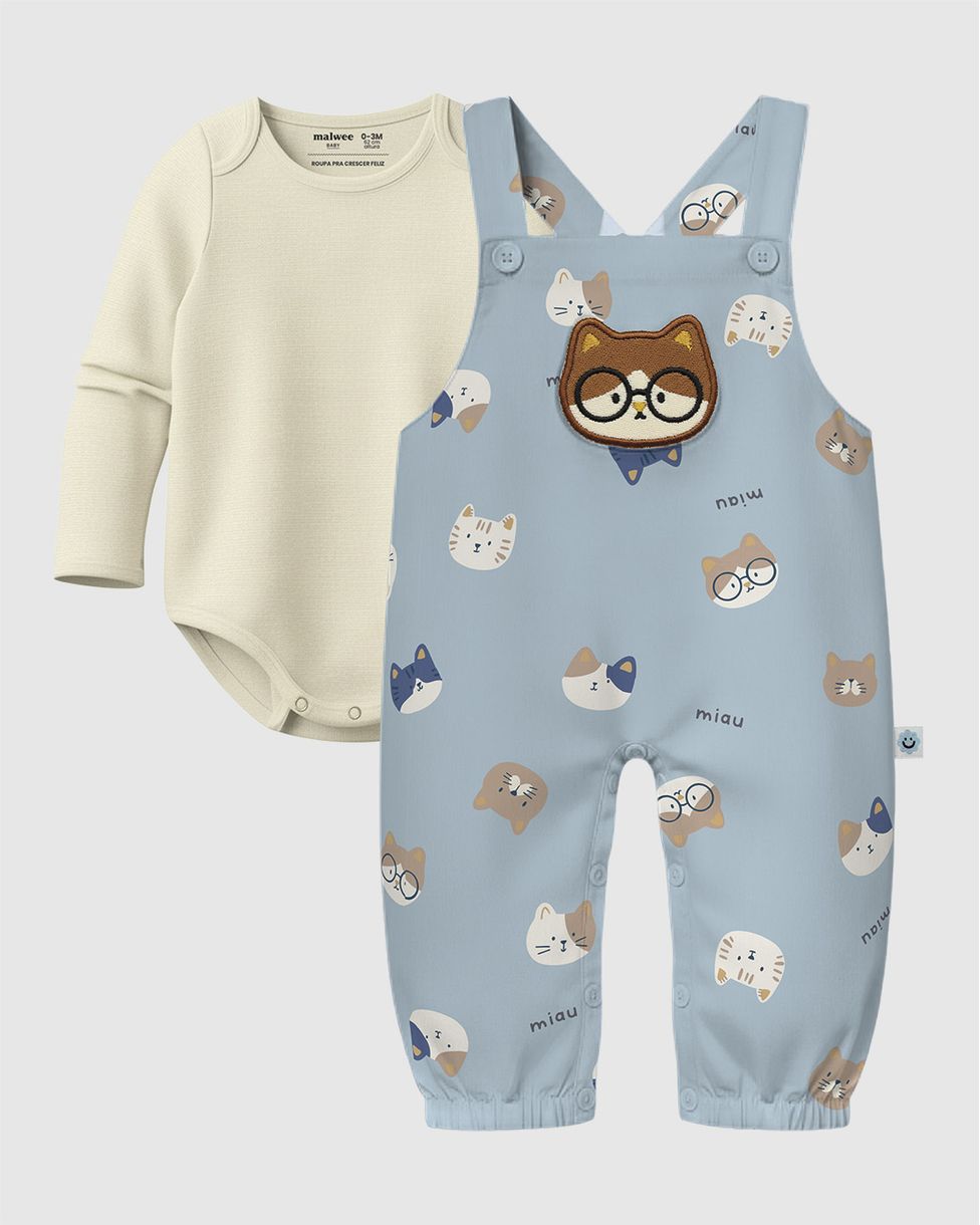 O Conjunto Bebê Menino Malwee Kids une funcionalidade e estilo para os dias frios. Composto por um body de malha algodão e um macacão em moletom stretch flanelado, garante conforto térmico e liberdade total para o bebê brincar. O visual fica completo com uma estampa lúdica e um bordado central charmoso.