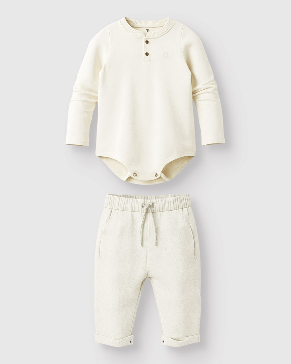 O Conjunto Carinhoso é a escolha ideal para garantir conforto e estilo no dia a dia. Composto por um body em malha algodão com bordado delicado e uma calça em moletinho trabalhado, este kit oferece maciez e liberdade de movimento para o seu bebê durante toda a estação Outono Inverno 26.
