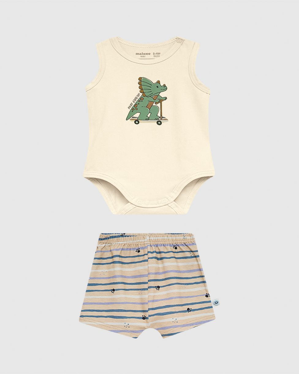 O Conjunto Bebê Menino Body Muito Radical! em Algodão da Malwee Kids é a escolha perfeita para os meninos aventureiros. Com body regata estampado em puff e bermuda listrada, oferece conforto, praticidade e estilo para o dia a dia dos bebês.