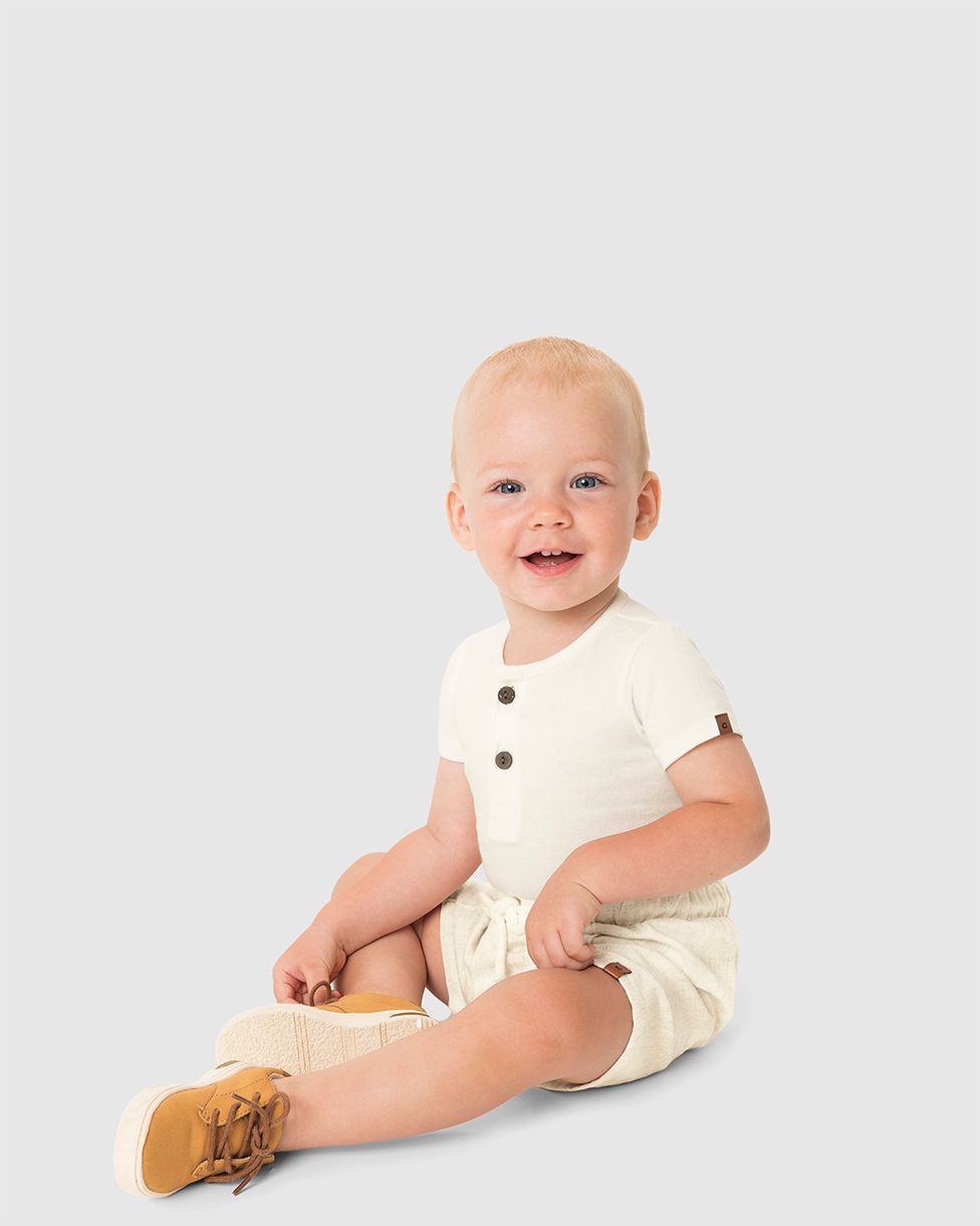Conjunto Bebê Menino Body Polo E Bermuda Em Viscolinho Texturizado - Carinhoso