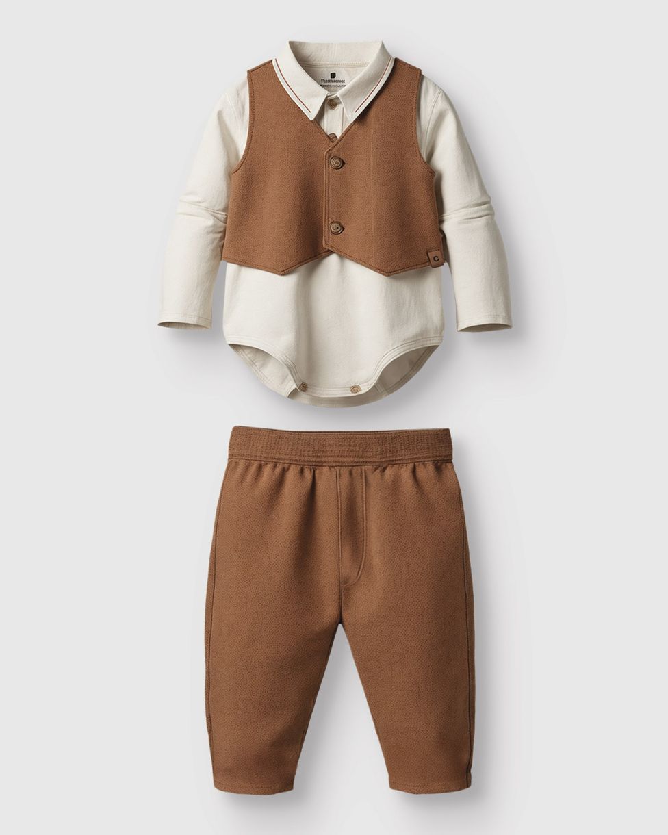 O Conjunto composto por 3 peças da Carinhoso é a escolha perfeita para o Outono Inverno. Unindo elegância e bem-estar, ele combina o conforto da malha algodão com a sofisticação do moletom piquet. Um visual completo e clássico para deixar seu bebê pronto para qualquer ocasião especial.
