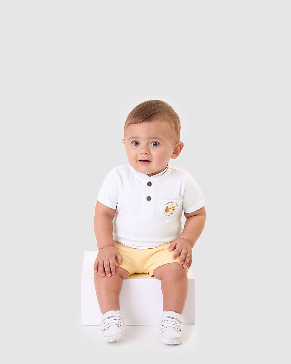 Conjunto Bebê Menino Camiseta Peitilho Frontal Em Algodão Malwee Kids Branco - 12M
