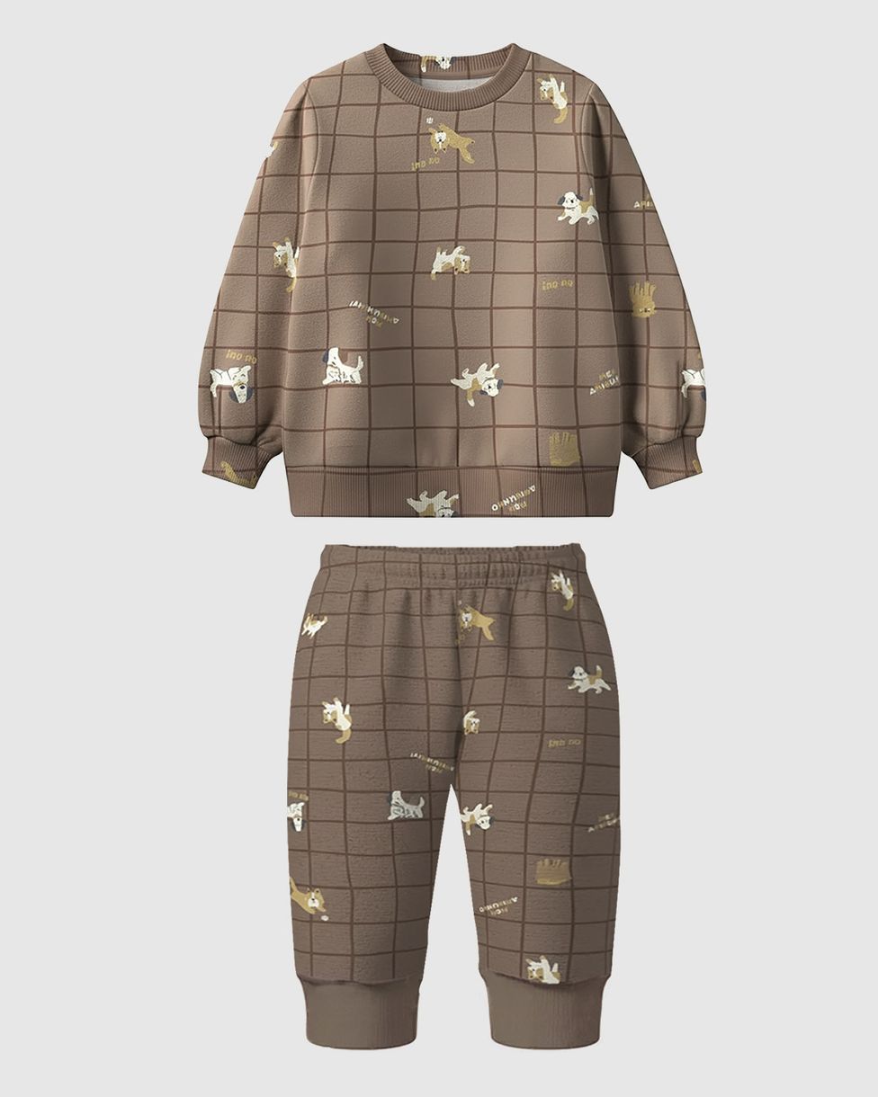 • Conjunto de blusão e calça com estampa rotativa de cachorros
