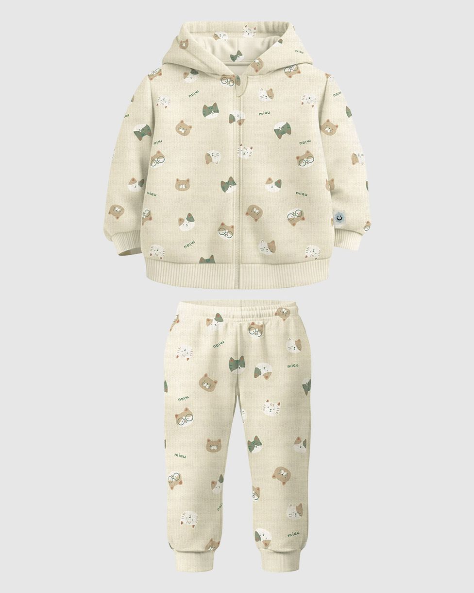 O Conjunto Bebê Menino Malwee Kids é ideal para manter as crianças aquecidas com muito charme. Produzido em moletom stretch flanelado, oferece um toque macio e flexibilidade para as descobertas do dia a dia. O conjunto conta com um casaco com capuz e orelhinhas, além de uma calça confortável.