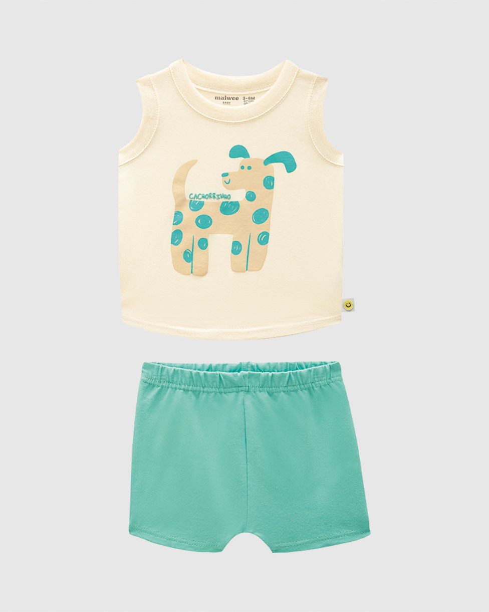 Conjunto Bebê Menino Regata Estampa Cachorrinho Em Algodão Malwee Kids