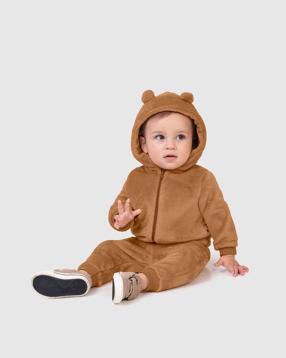Conjunto Bebê Unissex Jaqueta Com Capuz E Calça Em Pelúcia - Carinhoso