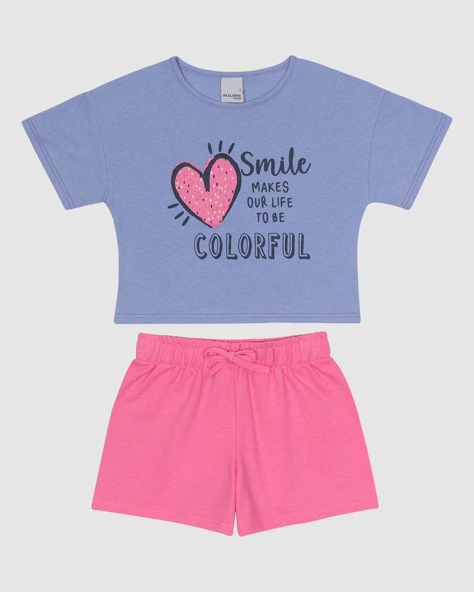 Conjunto Curto Infantil Menina Blusa Estampa Frontal Em Algodão Malwee Kids