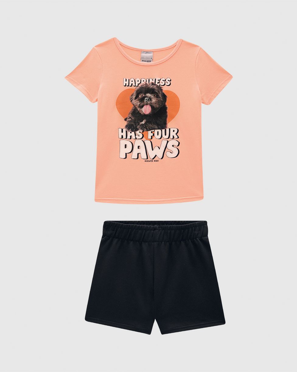 Conjunto Curto Infantil Menina Blusa Happiness Has Four Paws Malwee Kids