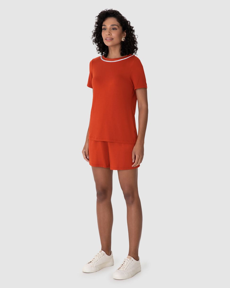Conjunto Feminino Blusa Gola Detalhada E Shorts Em Moletinho De Viscose Vermelho - P
