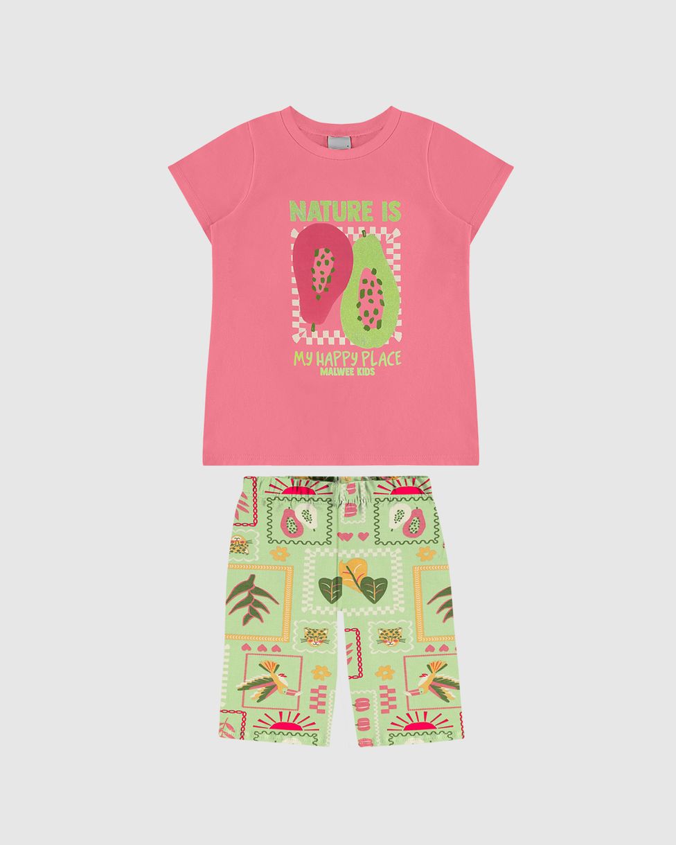 Conjunto Infantil Menina Bermuda Ciclista Estampada Em Algodão Malwee Kids