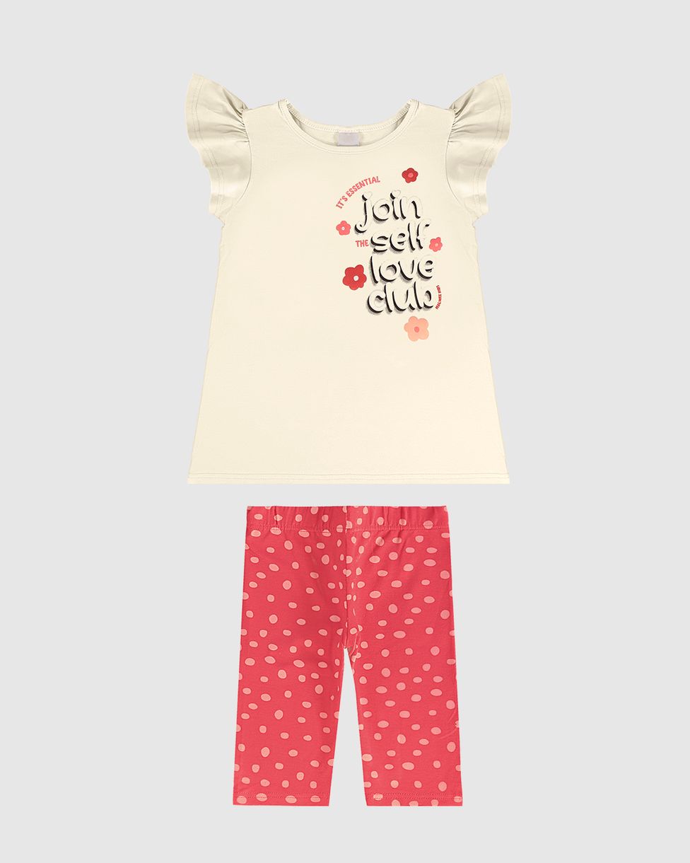 Conjunto Infantil Menina Blusa + Bermuda Estampada Em Algodão Malwee Kids