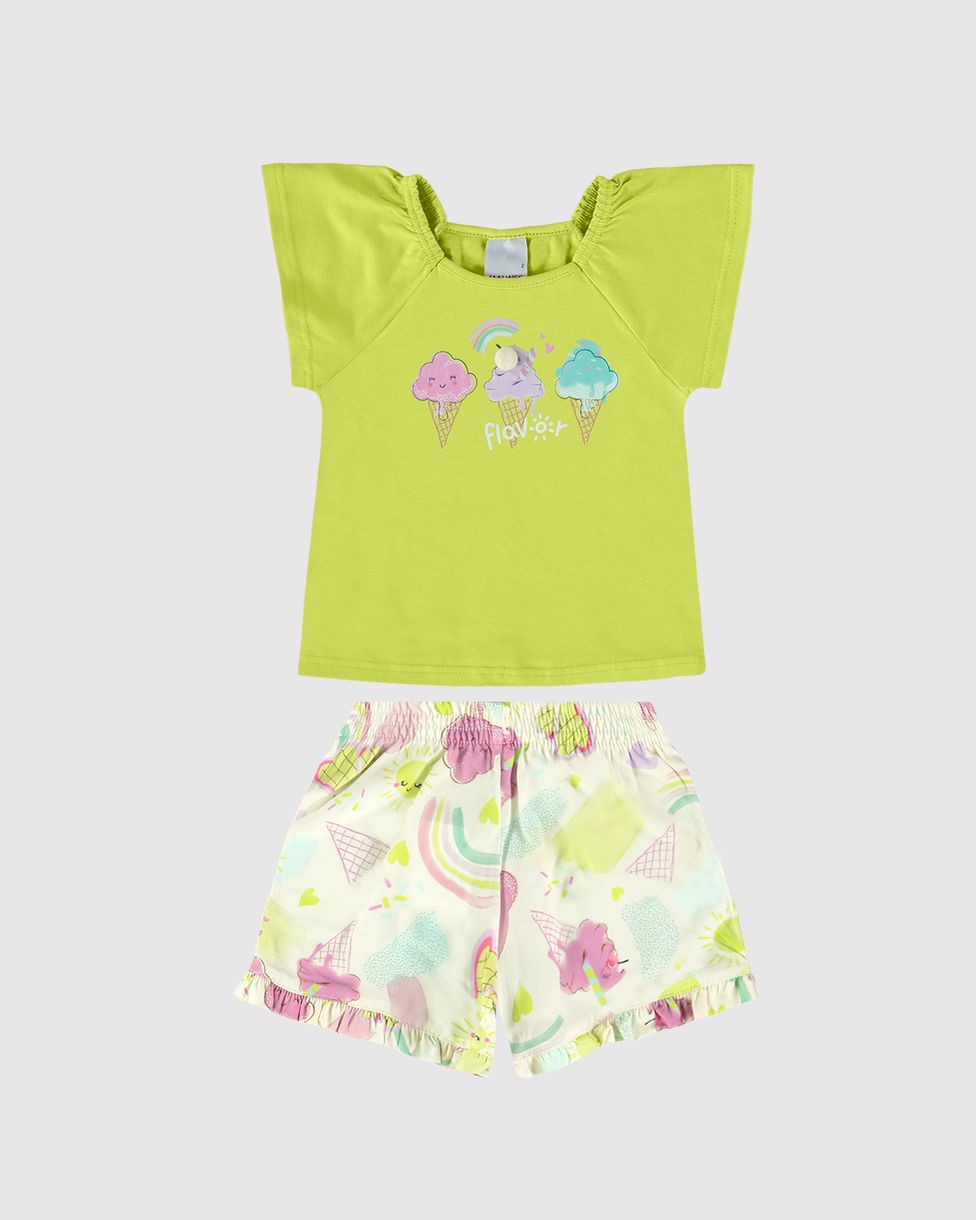 Conjunto Infantil Menina Blusa Com Aplique De Pompom Em Algodão Malwee Kids