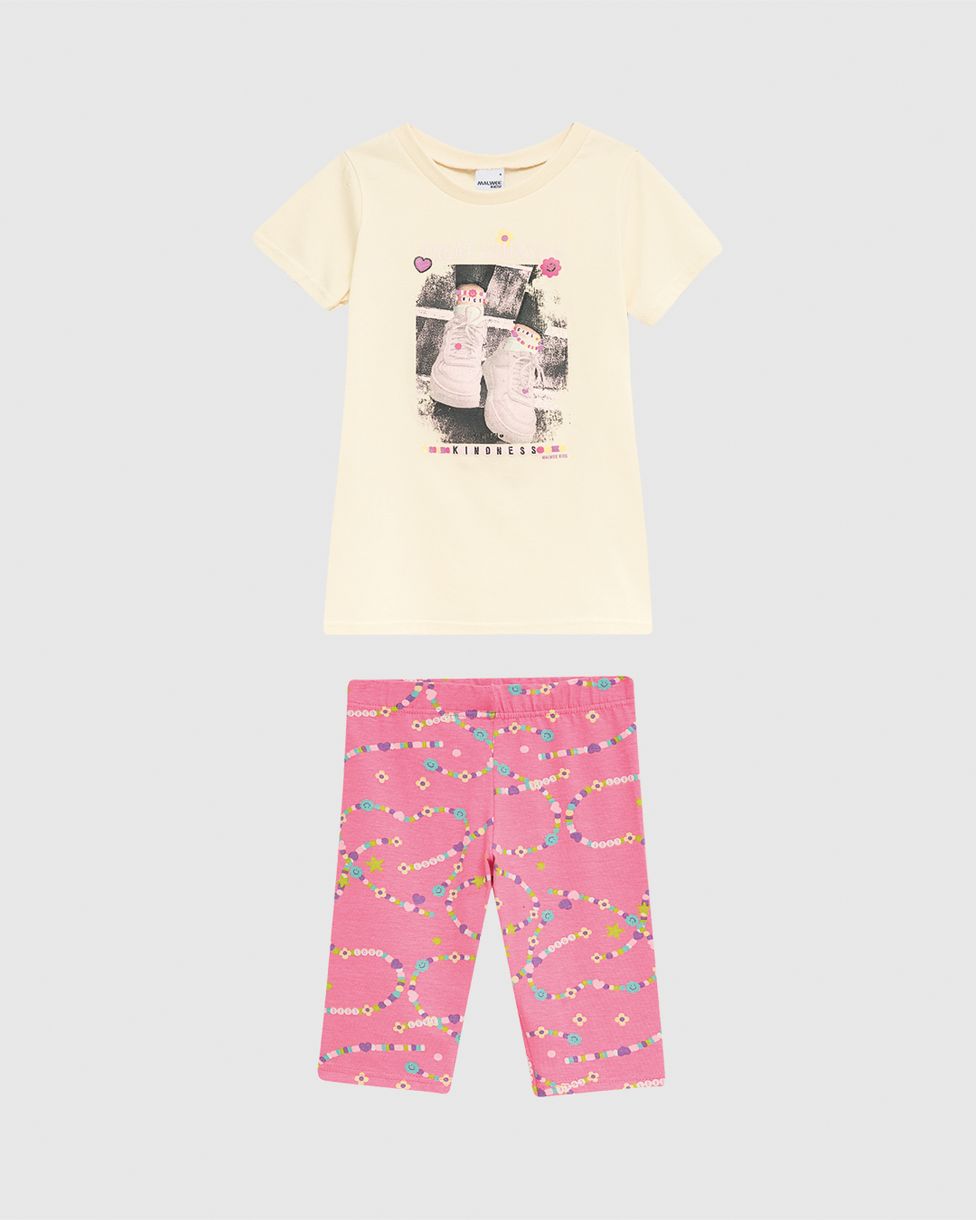 Conjunto Infantil Menina Blusa E Bermuda Estampada Em Algodão Malwee Kids