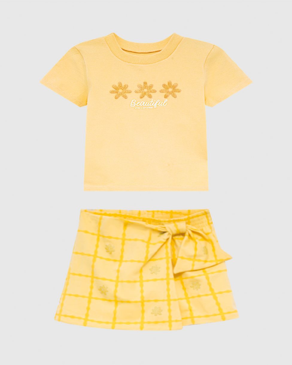 Conjunto Infantil Menina Blusa E Saia Estampa Quadriculada Malwee Kids