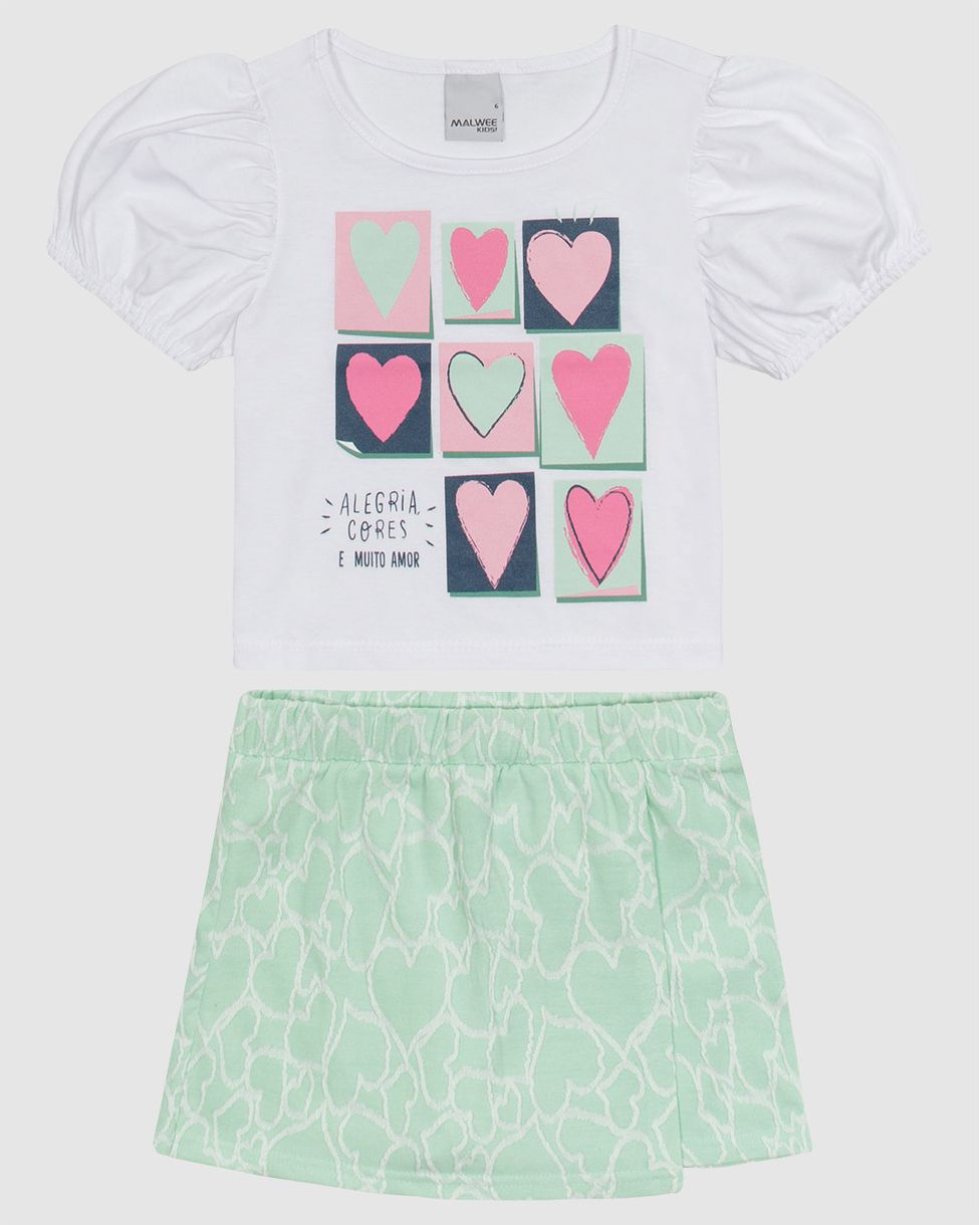 Conjunto Infantil Menina Malwee Kids: leveza e charme para momentos inesquecíveis. Composto por uma blusa delicada e um shorts saia em mix de tecidos, une conforto e estilo em uma peça prática e versátil. Perfeito para brincar, passear ou eventos especiais com muito conforto.