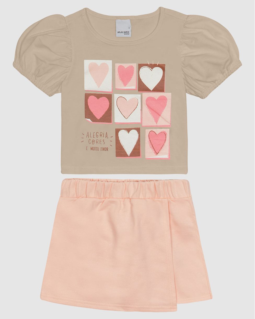 Conjunto Infantil Menina Blusa E Shorts Saia Em Mix Tecidos Malwee Kids