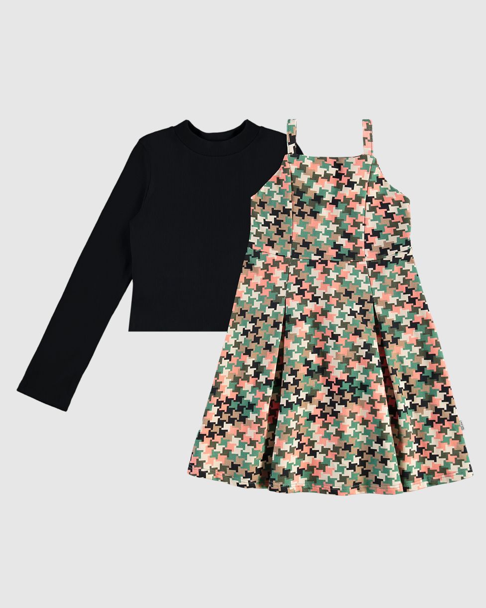 Conjunto Infantil Menina Blusa E Vestido Estampado Pied De Poule Malwee Kids