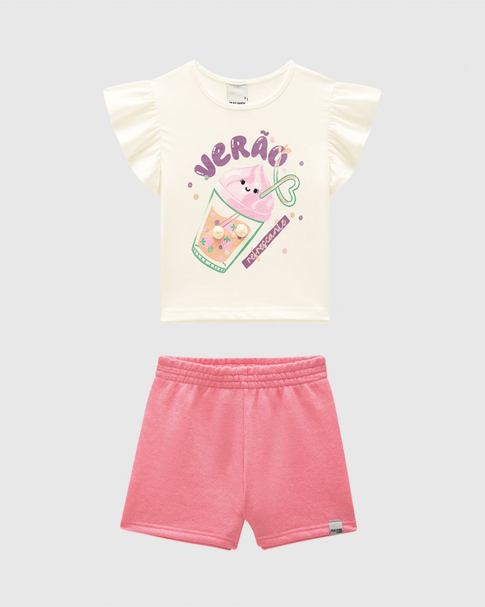 O Conjunto Infantil Menina Blusa Estampa Com Glitter e Pompom é feito em meia malha e moletinho rajado, oferecendo conforto e estilo para os dias de brincadeira. A blusa traz estampa divertida com detalhes em glitter e pompom, enquanto o shorts garante praticidade e liberdade de movimento.